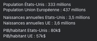 Dân số Hoa Kỳ và âu châu và lợi tứcVề phần mình, các quốc gia chư hầu chỉ đơn giản nghĩ rằng họ đang tham gia vào một hệ thống thương mại do Hoa Kỳ dàn dựng. Họ chưa hoàn toàn hiểu rằng nền kinh tế của họ đang suy yếu khi các nguồn lực quan trọng, vốn và công nghệ của họ bị hút cạn về trung tâm của đế chế, ngay cả khi sức sống chính trị của họ đang suy giảm dưới sự bảo hộ thoải mái của chủ nhân Mỹ.