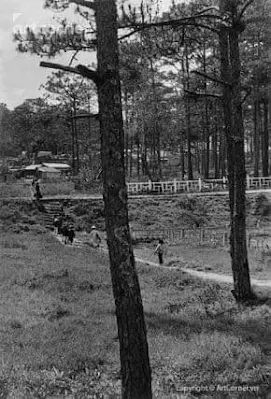 Chỗ này nếu không lầm là lớp khi xưa học 11 ème, cũng là nơi mình đi thi BEPC vấn đáp khi rớt thi viết. Cả đám ngồi đợi mấy thằng vô vấn đáp trước, cho đề bài rồi cùng nhau giải nhờ vậy mà mấy thằng dạo ấy như Võ Ngọc Sơn, mình ,.,., đậu vớt. Phía bên trái có cái vườn nhỏ trồng hoa cỏ, phải đi lên từ cái auvent cạnh văn phòng hiệu trưởng. Hình như cũng có 4 lớp học dành cho 9 ème và 8 ème còn 7 ème học khúc cạnh préau. Lâu quá không nhớ tới khúc này. Chỉ nhớ man mát là có khu ký túc xá cho dân nội trú. Phía sau preau.Đây là ngã ba, chỗ chạy vào Petit Lycee. Hình này chắc trước khi mình vào học vì không thấy hai cái nhà dù trú mưa. Nhất là các cây long tu to lớn được trồng sau dãy hàng rào làm bằng xi măng. Có căn nhà của gác dan tây đen, bên trái cổng ra vào, bên phải là nhà của hiệu trưởng. Dạo ấy chưa trồng cây, thời mình đi học thì cây cối to lớn che hết căn nhà. Có con đường đất, băng từ đường Hùng Vương, góc ngã ba Lê quý Đôn đi vào trường thay vì đi bộ vòng tới chỗ này. Chỗ này cũng là nơi đánh lộn của đám học khi xưa. Mình nhớ thằng Tuấn Trung và thằn Khoa hay đập lộn ở đây. Đám học chung vây quanh xem. Tuấn Trung thì chết tước 75, nghiện sì ke, còn Khoa thì nghe nói sau 75 chạy xe ôm. Về Đà Lạt thì không kiếm ra ông thần này. Hỏi bạn bè ai cũng lắc đầu. Mình xem ảnh hội ngộ dân Yersin xưa thì có ảnh anh chàng.