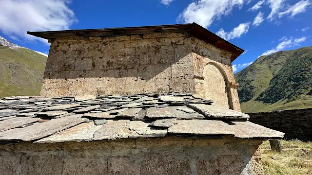 Đi Georgian chỉ có chỗ này mình thấy hay vì chưa bao giờ thấy lối kiến trúc một căn nhà nối liền với một tháp đài phòng thủ. Mỗi nhà mỗi tháp đài. Thường thì họ xây một cái thành xung quanh ngôi làng đây thì không. Mỗi nhà tự phòng thủ, một lối suy nghĩ khá lạ tự túc tự vệ. Dọc đường mình thấy rất nhiều ngôi làng với những tháp đài nhưng nhà ở đã được xây theo lối mới, mái nhà bằng tôn còn ở đây mái nhà làm bằng đá.