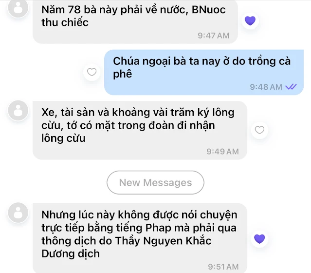 Về Đà Lạt thấy họ bán rượu mang tên Lafaro khiến mình ngạc nhiên nhất là họ kêu là mua lại từ người Pháp. Sau hiệp định Geneve thì người Pháp về nước nên họ kêu mua lại của người Pháp từ năm 1976 khiến mình thất kinh. Tương tự họ mới đăng có bà cụ nào 119 tuổi, có 7 người con, chồng chết liệt sĩ năm 1954 mà người con út năm nay 59 tuổi. 119 trừ cho 59, xem như bà ta sanh con năm 60 tuổi và chắc chắc người con không phải là con ông liệt sĩ vì ông ta chết từ năm 1954, đến nay là 70 năm. Chồng chết mà đến 11 năm sau mới sinh. Còn hơn Tần Thuỷ Hoàng phải đợi 10 tháng mới sinh. Kinh